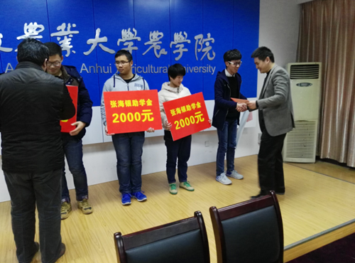 | 2015"張海銀助學(xué)金"發(fā)放座談會在安農(nóng)大舉行 | ||